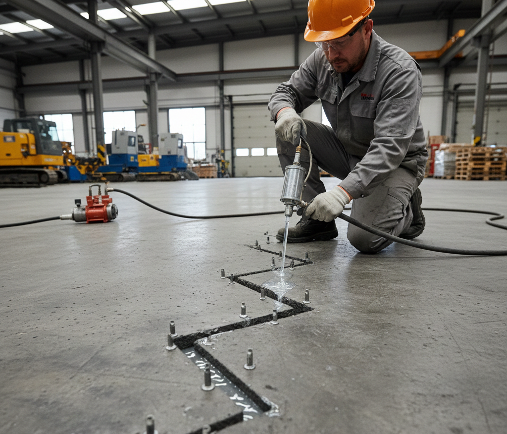 Perbaikan lantai beton yang tepat adalah kunci utama keberhasilan aplikasi epoxy atau PU flooring. Tanpa perbaikan yang sistematis, lapisan lantai akan mudah mengelupas atau retak mengikuti kegagalan struktur beton di bawahnya.