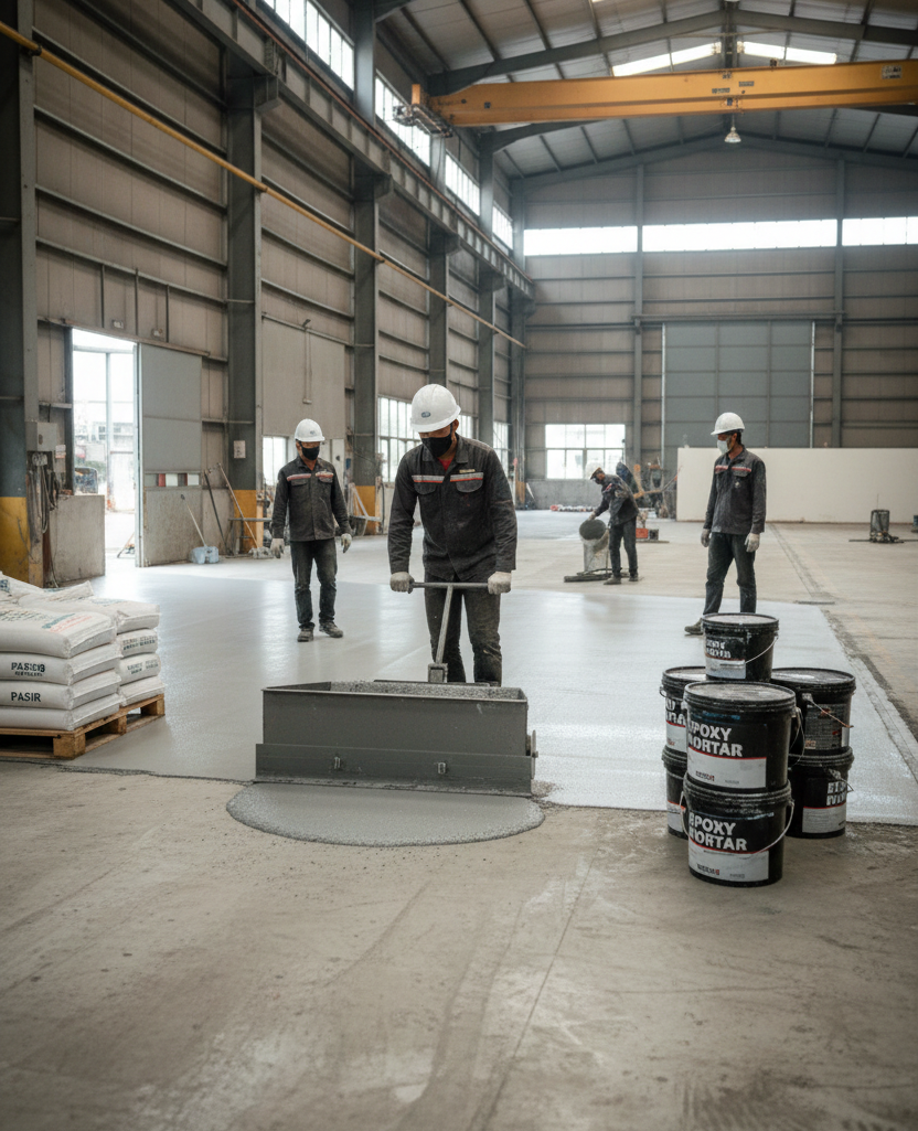 Aplikasi Epoxy Mortar untuk Lantai Beton Industri